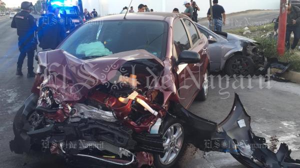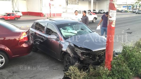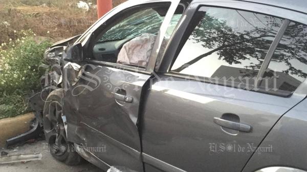 Un fuerte accidente automovilístico se registró la tarde de este viernes en la colonia Ciudad Industrial, en Tepic.