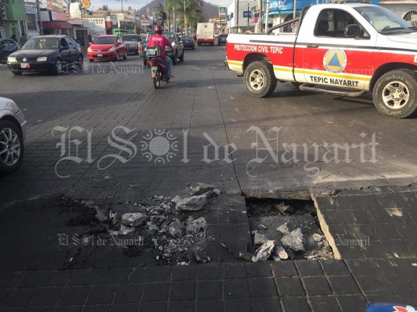 La tarde de este lunes se registró el levantamiento de asfalto en un tramo de la Avenida México, en la colonia Mololoa.
