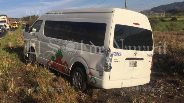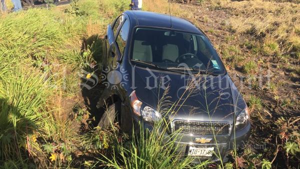 Sin embargo, el automóvil gris no se volcó, ya pegó con el techo en la combi que pasó en esos instantes, pero terminó saliéndose de la cinta asfáltica.