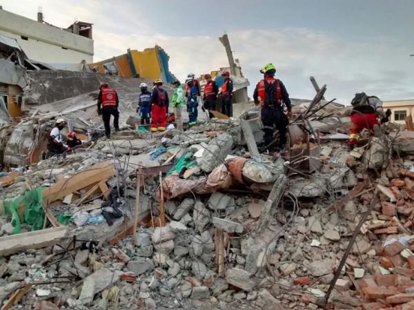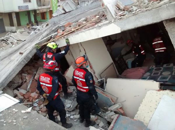 En un comunicado, la PF informó que personal especializado en búsqueda y rescate, coordinado con elementos del Ejército Mexicano, Marina Armada de México, Cruz Roja Mexicana y Protección Civil, inició tareas de apoyo al gobierno de Ecuador, para rescatar heridos y localizar desaparecidos.
