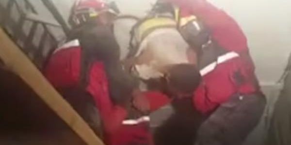 Después, los rescatistas abrieron un triángulo de alrededor de 70 centímetros, por el cual lograron sacar a una mujer cubierta de polvo y desorientada.