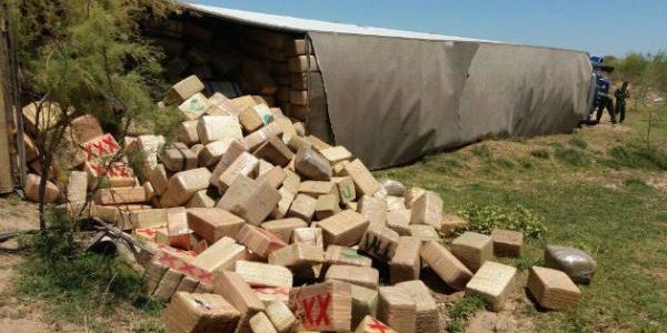 El tráiler que se encontraba volcado, había sido abandonado y los militares encontraron en su interior dos mil 495 paquetes que contenían mariguana, arrojando un peso aproximado de diez kilogramos cada uno, por lo que se contabilizó un total de 25 toneladas de la droga, además de recipientes con metanfetaminas o cristal.