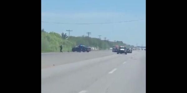 Elementos policiacos y sujetos armados protagonizaron un enfrentamiento a balazos en una carretera del estado de Tamaulipas, luego de que los uniformados indicaran el alto a una camioneta sospechosa que circulaba por el lugar.