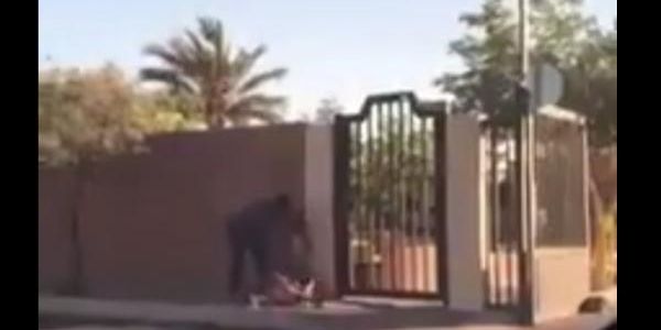 En la grabación se observa como un hombre mantiene contra una reja a una mujer, para posteriormente comenzar a jalar mientras que la mujer se aferra con todas sus fuerzas a la reja.