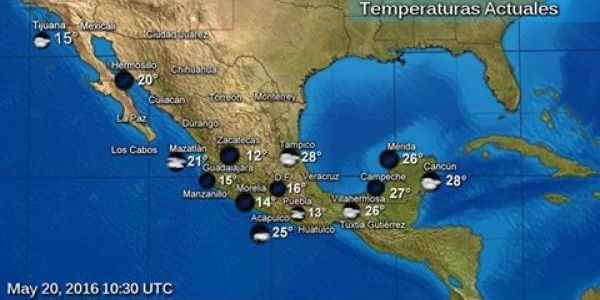 Las temperaturas superarán los 40 grados centígrados en Nayarit, Michoacán, Guerrero, Oaxaca, Chiapas, Veracruz, Tabasco, Campeche y Yucatán; y serán de 35 a 40 grados en Baja California, Sonora, Nuevo León, Tamaulipas, San Luis Potosí, Sinaloa, Jalisco, Colima, Hidalgo, Puebla, Morelos, Estado de México y Quintana Roo.