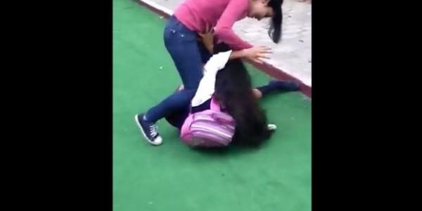 En la breve grabación se aprecia a una joven reclamarle a otra, al parecer por chismes sobre su novio, para después lanzarse contra ella y comenzar a golpearla en el piso.
