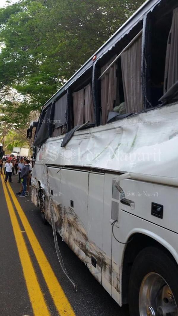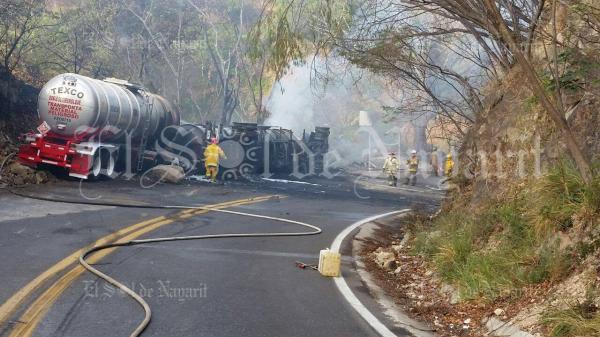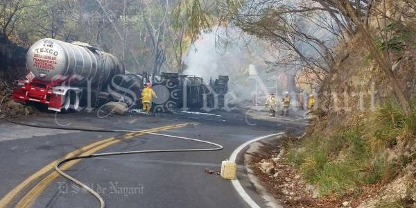 Las primeras horas de este sábado se registró un aparatoso accidente en la carretera número 200, Tepic Puerto Vallarta, donde una pipa cargada de combustible y un autobús resultaron involucrados.