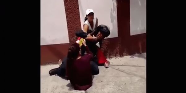 Una vez en el suelo el efectivo recibió un golpe en el rostro de parte de una de las mujeres que le sostenía un brazo en ese momento una de las mujeres indica al motociclista, "Vete, vete", mientras sometían al agente.