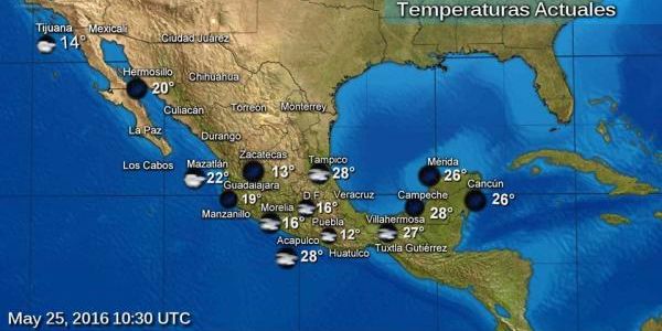 Por otro lado, un sistema de alta presión mantendrá el ambiente de caluroso a extremadamente caluroso en gran parte del país por lo que se estiman temperaturas superiores a 40 grados Celsius en San Luis Potosí, Michoacán, Guerrero, Oaxaca, Chiapas, Veracruz, Tabasco, Campeche y Yucatán.