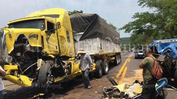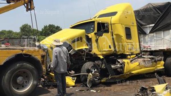 El vehículo impactado fue un tráiler de la marca Keenworth, color amarillo, con placas 23-TX-1N que circulaba con sentido a Tepic.