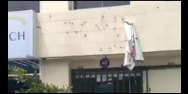 En la grabación se pueden observar una gran cantidad de impactos de bala en vehículos y edificios.