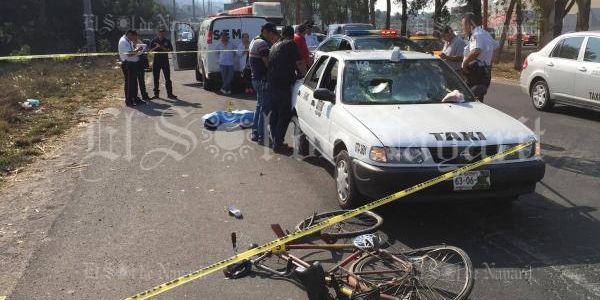 Los hechos se registraron sobre el libramiento carretero frente al Fraccionamiento Castilla, cuando un hombre de aproximadamente 50 años de edad que viajaba a bordo de una bicicleta fue arrollado por un taxi Tsuru color blanco con número económico GTX-3881.