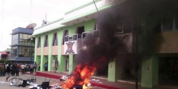 Tras el incendio en el edificio de la alcaldía, los pobladores de dicho municipio se llevaron algunos artículos de los supermercados; ropa, llantas, electrodomésticos.