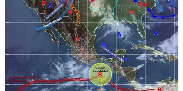 Por otro lado, una zona de inestabilidad entre Chihuahua y Coahuila, y la entrada de humedad del Océano Pacífico, el Golfo de México y el Mar Caribe, favorecerán lluvias fuertes en Guanajuato, Estado de México, Ciudad de México, Morelos, Puebla, Veracruz y Chiapas.