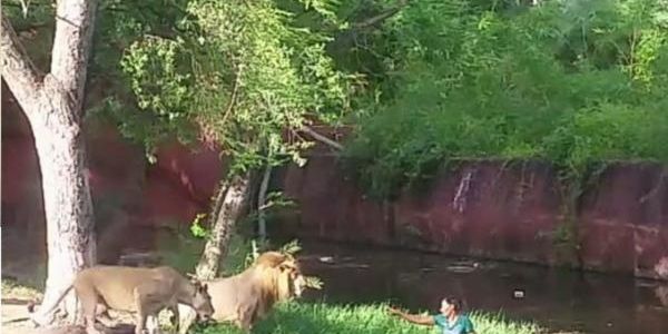 Un sujeto en estado de ebriedad saltó dentro del recinto de los leones, en un zoológico de la India, el pasado mes de mayo.