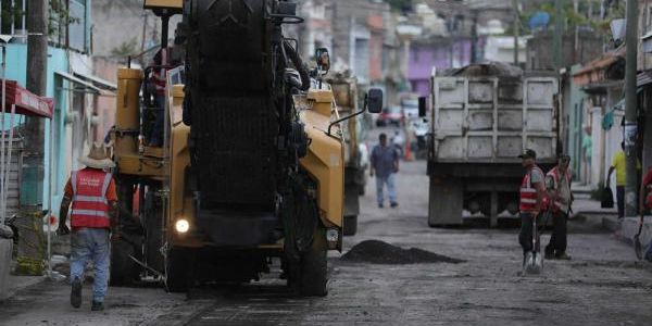 ?Tepic.-La presidenta municipal de Tepic, Ing. Geraldine Ponce, supervisó los trabajos de rehabilitación que se llevan a cabo en la calle Churubusco, donde se realizan labores de pavimentación y balizamiento.