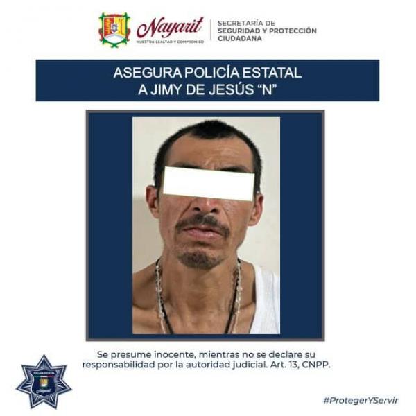 8.- Oscar Usiel N N de 36 años, en el municipio de Bahía de Banderas, asegurándole una bolsa de plástico conteniendo en su interior una sustancia cristalina y granulada con las características propias de la droga conocida como cristal.