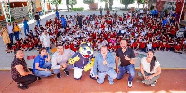 **Chacho Jaguar y Jaguares de Nayarit llegan a la primaria Ricardo Flores Magón, en la colonia 2 de Agosto.