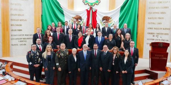 En esta Sesión Pública Solemne se contó con la distinguida presencia de autoridades civiles y militares, funcionarios estatales e invitados especiales, en la que se realizaron honores a la Bandera, con la participación de la Treceava Zona Militar.