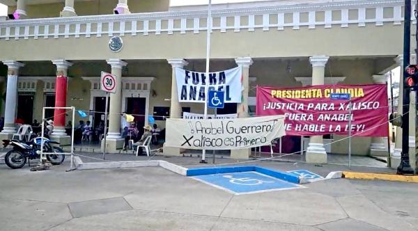 La Presidenta Municipal de Xalisco, Anabel Guerrero Benítez, habría dado órdenes para que cerraran las puertas de la presidencia municipal y culpar a los manifestantes por ello.