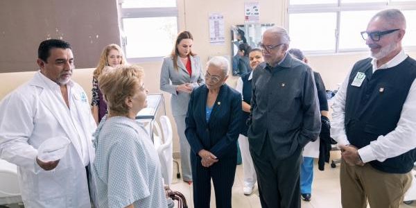 Tepic, Nayarit; 3 de diciembre de 2025.- Para acompañar a las y los pacientes que se recuperan de la más reciente jornada de cirugías de rodilla y prótesis de cadera del Sistema DIF Nayarit, la presidenta de la institución, doctora Beatriz Estrada Martínez, y su esposo, el gobernador del estado, Miguel Ángel Navarro Quintero, visitaron el Hospital de Especialidades IMSS-Bienestar Dr. Antonio González Guevara, donde dialogaron con las familias y constataron el avance de quienes comienzan una nueva etapa de movilidad y bienestar.