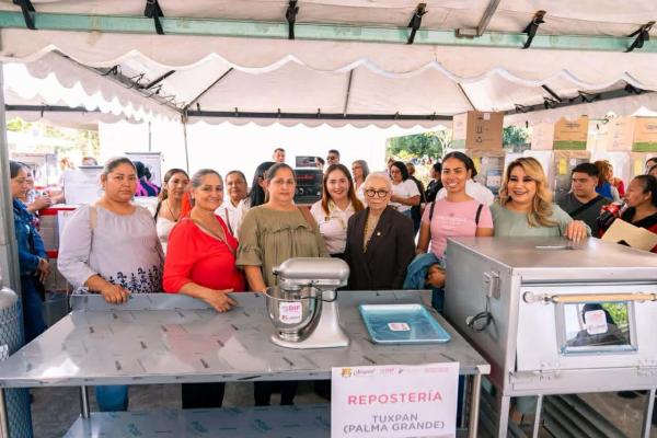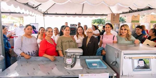 Los apoyos incluyeron equipos para reparación de aires acondicionados, tablaroca, carpintería, reparación de motocicletas, cocina, repostería, belleza, camillas para masajes, máquinas de coser y kits de primeros auxilios.