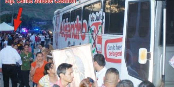 Pero no todo fue bueno, pues el diputado y líder transportista en Nayarit, Carlos Saldate Castillón, como todo buen político, se aposentó a un lado del autobús de Alejandro Galván, y a pesar de que la unidad estaba rotulada con el nombre de Galván, Carlos Saldate Castillón daba la mano a cada persona que subía al camión de pasajeros, como si él mismo lo hubiera asignado.