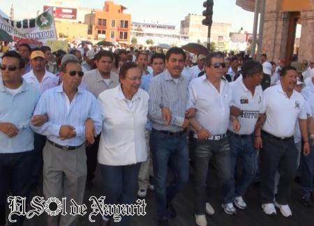Los sindicalizados del SUTSEM y la ciudadanía en general se dieron cita al llamado de la Líder Estatal del SUTSEM en Nayarit, Águeda Galicia, para manifestarse en contra de la administración del Presidente Municipal, asegurando que Es un clamor cada que uno se mete a la colonias populares, ya que las carencias cada día se hacen más notorias.