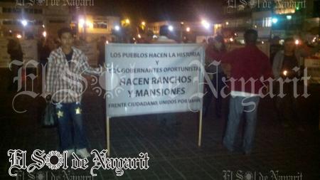 Poco antes de las 7:00 de la noche de este viernes, un gran grupo de personas comenzaron a reunirse en la Plaza Bicentenario, frente a Palacio de Gobierno, pidiendo la destitución de Rafa Cervantes, Presidente Municipal de Bahía de Banderas.