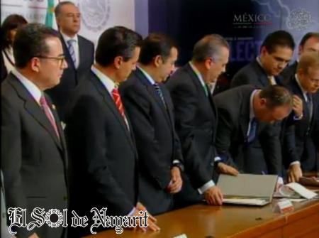 El Presidente de la República Enrique Peña Nieto en compañía de los Coordinadores de los Diputados del PRI, PAN, PRD y Verde Ecologista hicieron la presentación de la Iniciativa de Reforma Constitucional en materia de Telecomunicaciones.