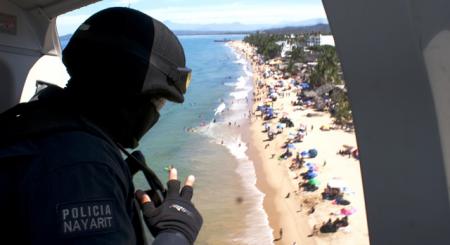 * Más de 150 mil visitantes que abarrotan los principales destinos turísticos del estado son cuidados por la Policía Nayarit y el helicóptero 'Apache'.