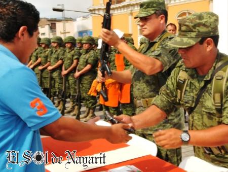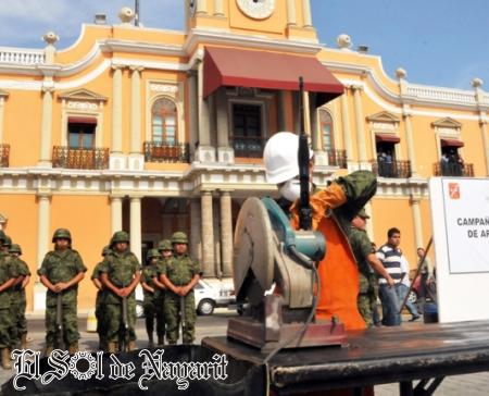 Con la presencia de El Secretario General de Gobierno, José Trinidad Espinoza Vargas, en representacion del Gobernador Nayarita se llevo acabo el arranque del Programa Estatal de Canje y Destrucción de Armas de Fuego, el cual tiene como propósito evitar el uso indebido de armas de fuego en Nayarit.