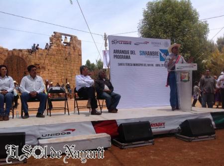 En representación de Rosario Robles Berlanga, Secretaria de Desarrollo Social del Gobierno de la República, Enrique González Tiburcio acompañó al mandatario nayarita al evento de inauguración, el cual se llevó a cabo en la comunidad serrana de Santa Teresa, donde se reunieron cientos de habitantes de ese lugar y de las localidades aledañas.