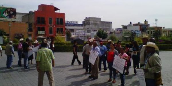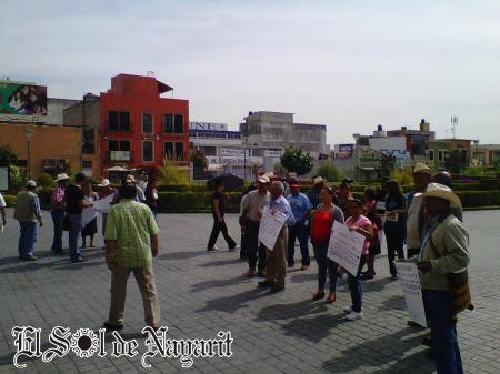 La mañana de este viernes ejidatarios provenientes del municipio de Xalisco y exigiendo el pago de cien millones de pesos producto de la expropiación de sus tierras donde se construyo el aeropuerto internacional "Amado Nervo" de Tepic se manifestaron frente a palacio de gobierno.