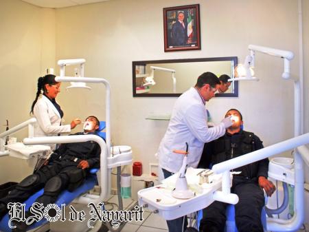 Dicho consultorio, dijo el Fiscal, da servicios totalmente gratuitos a agentes de la Policía Nayarit, como limpiezas dentales, restauración dental a base de resina, extracciones y endodoncias, con lo cual se ahorran gastos que van de los 2 mil a los 12 mil pesos.