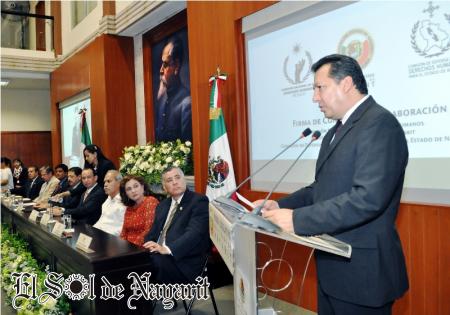 Con el fin de consolidar una estrecha relación institucional entre el Poder Legislativo de Nayarit, la Comisión Nacional de los Derechos Humanos y la Comisión de los Derechos Humanos para el Estado de Nayarit, este lunes en el patio central Presidente Venustiano Carranza Garza del Congreso local, se efectuó la Firma de Convenio de Colaboración entre estos organismos autónomos y la Cámara de Diputados.