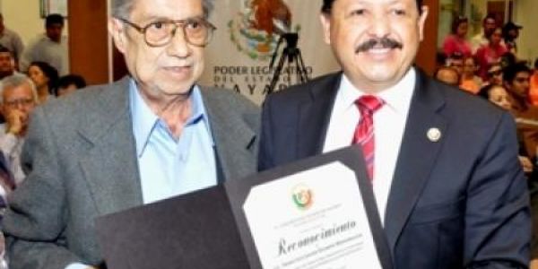 En el marco de este homenaje, el Presidente del Poder Legislativo de Nayarit, diputado Armando García Jiménez, a nombre de los integrantes de la Trigésima Legislatura, hizo entrega de un estímulo económico y un reconocimiento por su trayectoria periodística y por ser permanente comunicador de las actividades parlamentarias del Congreso del Estado.
