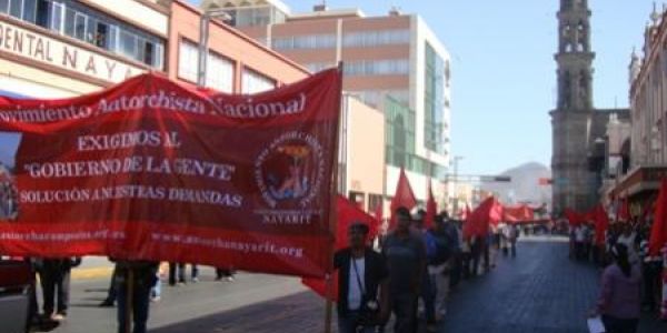 El día de ayer jueves, miembros de Antorcha Campesina Nayarit, marcharon de nueva cuenta, por las calles de Tepic, rumbo al Palacio de Gobierno; en demanda que se cumpla el acuerdo firmado por el Gobierno en 2011.