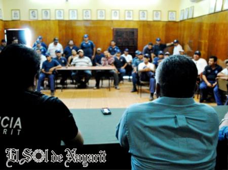 Tras entablar un diálogo productivo en la sala de sesiones del Ayuntamiento de Tecuala, en donde estuvo presente un representante del Fiscal Edgar Veytia, la autoridad municipal se comprometió a cubrir los adeudos pendientes con los uniformados en un plazo no mayor a los 60 días.