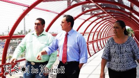Al respecto, el mandatario estatal comentó que gracias a esta puente, que consta de 60 metros de longitud lo que lo convierte en el más largo construido en Tepic, cientos de peatones podrán cruzar con total seguridad esta vía, una añeja demanda de los vecinos de esa zona.
