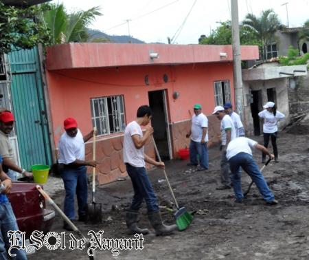 A fin de apoyar de forma solidaria a los damnificados por la tromba que azotó la tarde del pasado sábado en el municipio de Xalisco, este martes, representantes populares nayaritas, el Voluntariado y personal del Congreso del Estado, encabezados por el Presidente de la Comisión de Gobierno Legislativo, Armando García Jiménez, acudieron a esta cabecera municipal a realizar labores de limpieza de calles y viviendas que resultaron afectadas por este fenómeno natural.