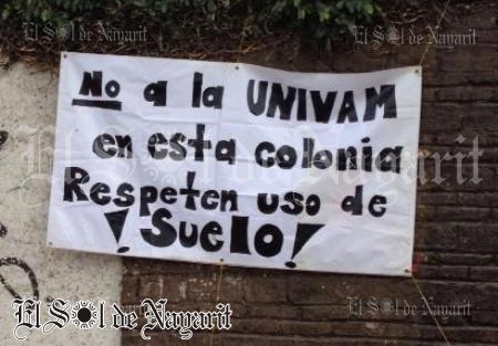 Asimismo, los inconformes colocaron mantas en las que manifiestan su malestar, en los muros frontales del inmueble que está siendo adecuado para que funcione allí la citada escuela de la UNIVAM, ubicado en la esquina de las calles Encino y Ceiba.
