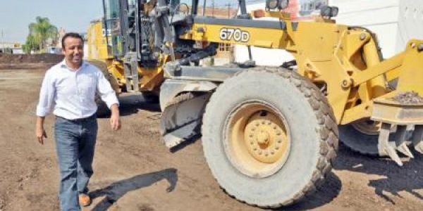 el GR (gran rata) tomandose una foto-op para la posteridad dizque trabajando con una retro-excavadora o lo que sea esa maquina. mas bien parece que esta modelando para el concurso de MISS MEXICO GAY 2014 y ya la nombraron la ganadora. muy bella ella.