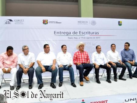 Producto del trabajo coordinado entre la federación y el estado, el Gobernador de la Gente, Roberto Sandoval Castañeda, y el Director General de la Comisión para la Regularización de la Tenencia de la Tierra (CORETT), Jesús Alcántara Núñez, entregaron las primeras 257 de más de 600 escrituras que habrán de entregarse gratuitamente a familias nayaritas de escasos recursos económicos.