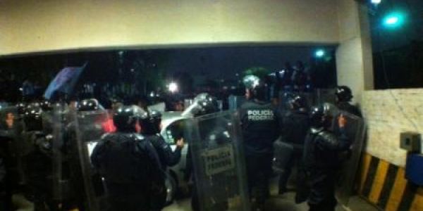 La situación se resolvió cuando un mayor número de elementos de la Policía Federal replegó físicamente a los maestros hasta las aceras de la calle Emiliano Zapata, tomando nuevamente el control de las instalaciones del Palacio Legislativo, finaliza el comunicado.