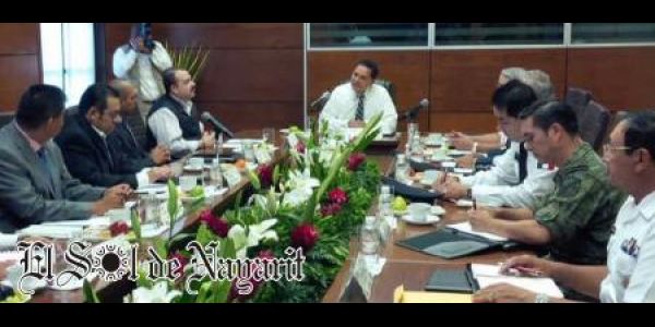 en este encuentro participaron el Secretario General de Gobierno, José Trinidad Espinoza Vargas; el Fiscal General del Estado, Edgar Veytia; el Secretario de Seguridad Pública del Estado, General Jorge Alonso Campos Huerta, y los comandantes de la Décimo Tercera Zona Militar, General Sergio García Vera, y de la Sexta Zona Naval, Tomás López Hernández.