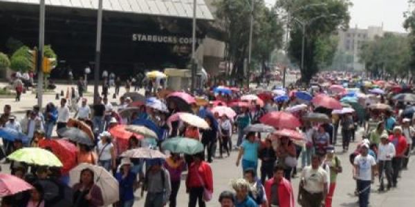 Cerca de siete mil quejosos marcharon desde avenida Hidalgo a Bucareli en la ciudad de México, acordonando la zona en menos de 40 minutos y afectando las cialidades.