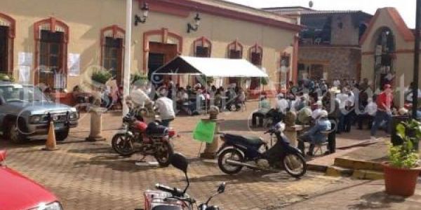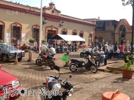 Cerca de 200 trabajadores de la cabecera municipal y del poblado de Las Varas, se plantaron frente al edificio de la Presidencia Municipal, donde colocaron pancartas con leyendas como: Sabes cuál es la caja chica de Pablo Pimienta y del Lic. Pablo Ibarría; la oficina de El Rincón de Guayabitos.