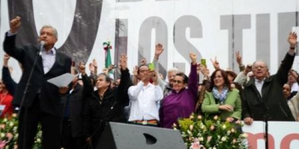 En su primer mitin masivo en contra de la Reforma Energética del Presidente Enrique Peña Nieto y el primero desde 2012, realizado desde el cruce de las avenidas Balderas y Juárez, en la Ciudad de México, pero que por la concurrencia se extendió por la Alameda y el Eje Central, el líder del Movimiento de Regeneración Nacional planteó que el acto no se celebró en el Zócalo porque ahí se manifiestan los maestros del país, a quienes mostró su respeto y solidaridad.