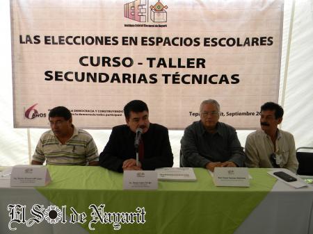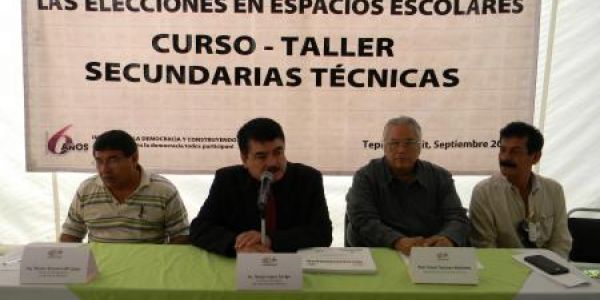 Desde el viernes pasado concluyó en el Instituto Estatal Electoral de Nayarit, la Capacitación especial denominada Elecciones en Espacios Escolares dirigida a maestros de Formación Cívica y Ética de los Subsistemas de Escuelas Secundarias: Generales, Técnicas, Estatales y Particulares, para la Jornada Electoral Estudiantil que se celebrará el próximo 27 de Septiembre 2013, en la que se elegirán las mesas directivas de las sociedades de alumnos para el ciclo escolar 2013-2014, en alrededor de 190 escuelas.